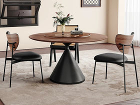 中古·尚 中古风 多层实木板+仿真木皮+岩板+底板(不含转盘) 1.2米餐桌