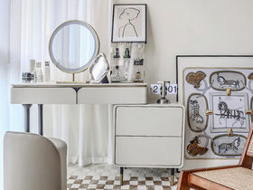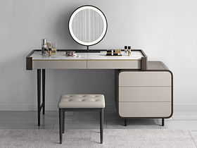 柏思戈 轻奢 亮光岩板+亮光烤漆柜子,碳素钢五金底架+实木抽屉 灰色 0.8米梳妆台包含凳子、镜子