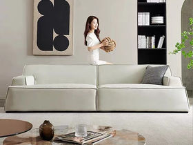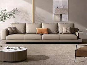 B系优选 极简 生态真皮+松木+高密度回弹海绵+羽绒+钛金铁皮脚 四人位 网红康纳利 2.75米沙发