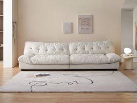 A系优选 奶油风 磨砂布+桉木+高密度回弹海绵+羽绒+公仔绵+黑色脚 四人位 网红云朵 2.8米沙发