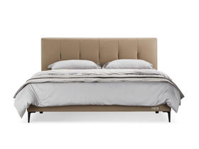 左右家居 极简 接触面头层牛皮+全实木框架+碳素钢五金脚+钢木排骨架 1.8米软床