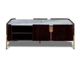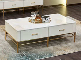 拉斐尔 轻奢 多层实木板+烤漆+电镀不锈钢五金+天然大理石+岩板+静音导轨 1.3米组合茶几