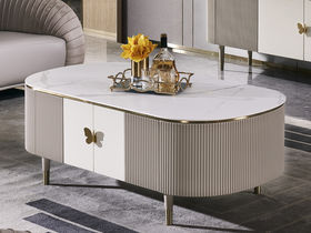 拜洛迪 轻奢 实木+木饰面+岩板面 浅咖色 1.6米 茶几
