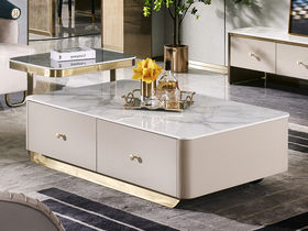 拉斐尔 轻奢 多层实木板+烤漆+电镀不锈钢五金+岩板+静音导轨 1.3米茶几