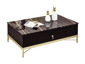 拉斐尔 轻奢 多层实木板+大理石+电镀不锈钢五金+烤漆 1.2米茶几