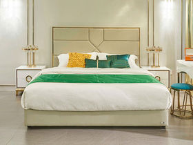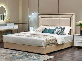 拉斐尔 轻奢 仿真皮+多层实木板+实木内架+电镀不锈钢五金+高回弹海绵+钢木排骨架 1.8米床
