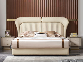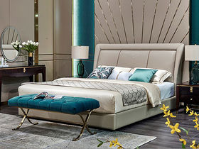拉斐尔 轻奢 纳帕真皮+仿真皮+多层实木板+实木内架+碳素钢五金+钢木排骨架 1.8米床