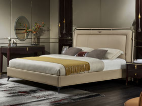 拜洛迪 轻奢 接触面真皮靠头+三边齐边+实木排骨架 米灰色 1.8米床