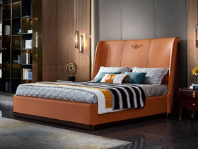 拜洛迪 轻奢 接触面真皮+床头宾利格纹刺绣+可替代背景墙+三边齐边实木排骨架 高雅杏色 1.8米床
