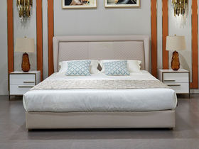拜洛迪 轻奢 科技布 加宽加厚实木排骨架 米黄色 1.8米床