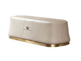 拜洛迪 轻奢 宾利格纹刺绣+五金拉丝香槟金+纳帕皮 米灰色 床尾凳