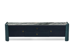 拜洛迪 轻奢 实木弯板木饰面装饰+奢石岩板+扪皮工艺 蓝色 2米 电视柜