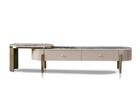 拉斐尔 轻奢 多层实木板+烤漆+电镀不锈钢五金+岩板+静音导轨 电视柜