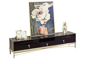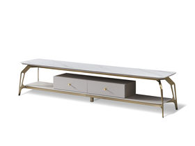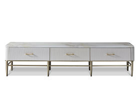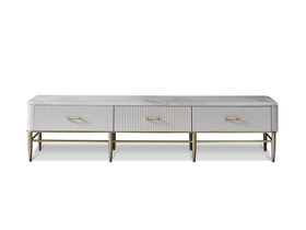 拜洛迪 轻奢 板木结合配拉丝钛金不锈钢+大理石 白色 2米电视柜