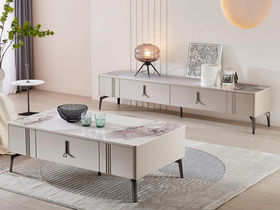 【套餐专享价】每屋优享系列 现代简约 柜体:高光玉灰色 岩板+托底缓冲导轨 PVC环保覆膜工艺 香奈儿 (不含边柜)2米电视柜(未开电源孔)