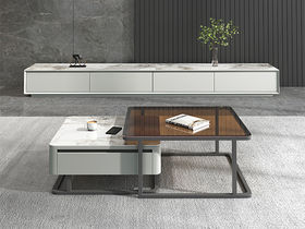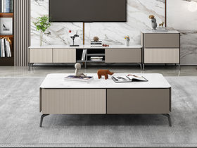 A系优选 现代简约 中纤板(MDF)亮光烤漆+碳素钢脚架+岩板+实木松木抽屉 香奈儿 0.8米组合茶几