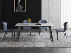 B系优选 现代简约 岩板+碳素钢脚架 1.4米餐桌+4把餐椅(含底板)