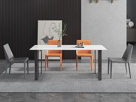 A系优选 现代简约 餐桌:岩板+碳素钢脚架 餐椅:碳素钢脚架+PU皮 1.4米餐桌+4把餐椅 (含底板)