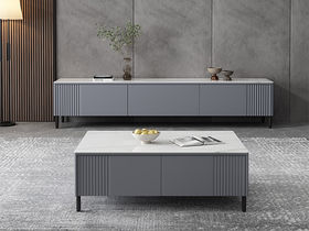 B系优选 极简 中纤板烤漆+岩板+碳素钢脚架 1.3米茶几