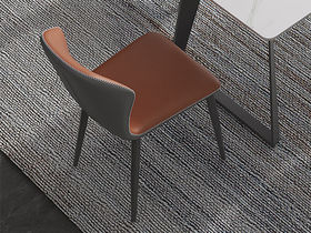 B系优选 现代简约 餐桌:碳素钢底座+12mm马肚形岩板+多层板底板 餐椅:碳素钢底座+PU皮 1.4米餐桌+4把餐椅(含底板)