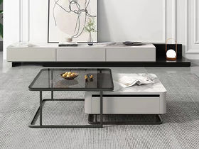 A系优选 现代简约 中纤板(MDF)亮光烤漆+碳素钢脚架+岩板+实木松木抽屉 香奈儿 0.8米组合茶几