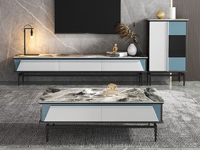 B系优选 现代简约 中纤板(MDF)烤漆+碳素钢脚架+岩板+实木松木抽屉 香奈儿 2米电视柜(未开电源孔)