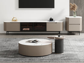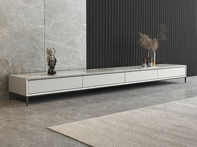 B系优选 现代简约 中纤板(MDF)亮光烤漆+岩板台面+实木松木抽屉 香奈儿 拉伸电视柜(未开电源孔)