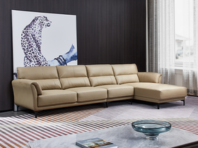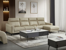 CBD家居 现代简约 接触面真皮+非接触面仿皮+超弹海绵+云杉木实木主框架+五金脚 1+2+左贵妃 3.17米沙发