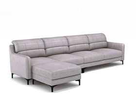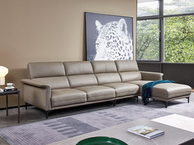 CBD家居 现代简约 接触面真皮+非接触面仿皮+东亚海绵+云杉木实木主框架 TE13雁灰 1+3+左手贵妃 转角3.32米沙发