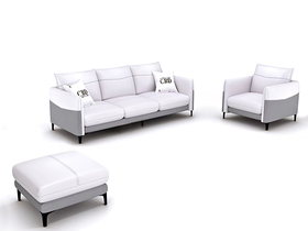 CBD家居 现代简约 优质纳纤皮+东亚海绵+云杉木实木主框架 主色HE12洁白辅色HE01高级灰 单人位+三人位+脚踏组合 沙发