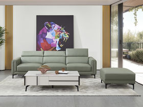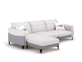 CBD家居 现代简约 纳纤皮+超弹海绵+云杉木实木主框架+五金脚 三人位+脚踏 2.83米沙发