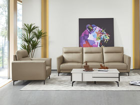 CBD家居 现代简约 接触面真皮+非接触面仿皮+超弹海绵+云杉木实木主框架+五金脚 三人位+单人位 3.45米沙发