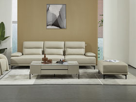 CBD家居 现代简约 优质纳纤皮+东亚海绵+云杉木实木主框架 主色HE12洁白辅色HE01高级灰 四人位+脚踏组合 沙发