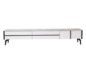 【售完即止】CBD家居 现代简约 廖斯白岩板+白色哑光烤漆柜体+黑砂五金脚 图片色 2米电视柜
