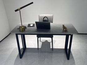 CBD家居 现代简约 阿玛尼灰岩板+K33P+黑色喷砂 灰色 书桌(不含椅子)