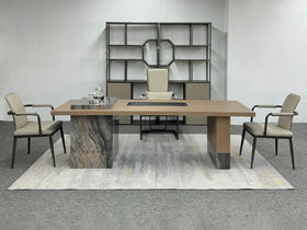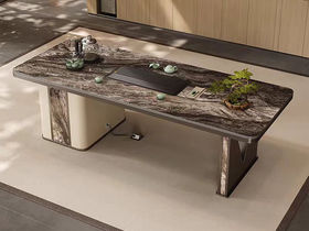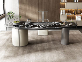 上铭轩 轻奢 实木框镶嵌岩板+碳素钢五金+仿真皮+电茶炉(不含椅子茶具) 2米岛台 茶台