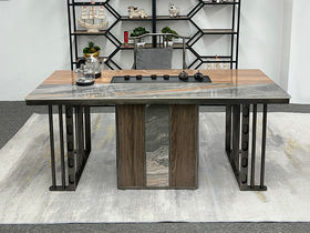 上铭轩 轻奢 岩板威尼斯棕+胡桃木纹岩板+碳素钢五金+电茶炉(不含椅子,茶具) 1.6米岛台 茶台