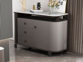 逸澜斯 极简 深色金属漆+太空灰+冰清玉洁微晶石+环保高密度板+实木+钛金脚 餐边柜